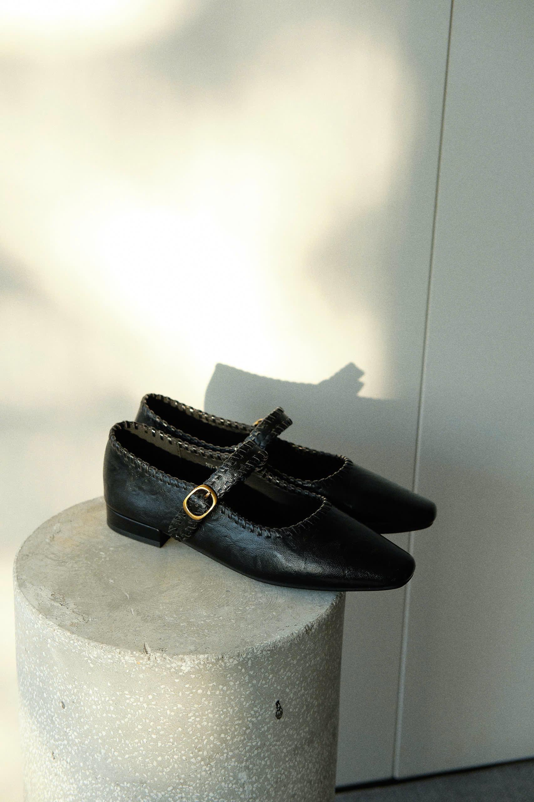 GIÀY ĐEN KHÂU VIỀN KHUY VÀNG
