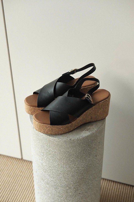 SANDAL DÂY CHÉO ĐEN VÂN GỖ